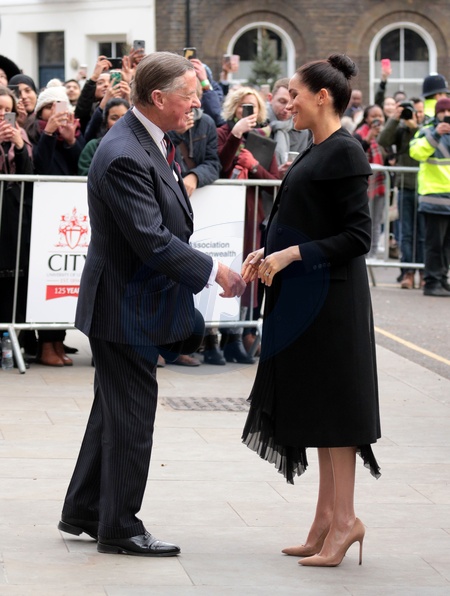 Ksiezna Meghan w czerni podczas wizyty w Association of Commonwealth Universities