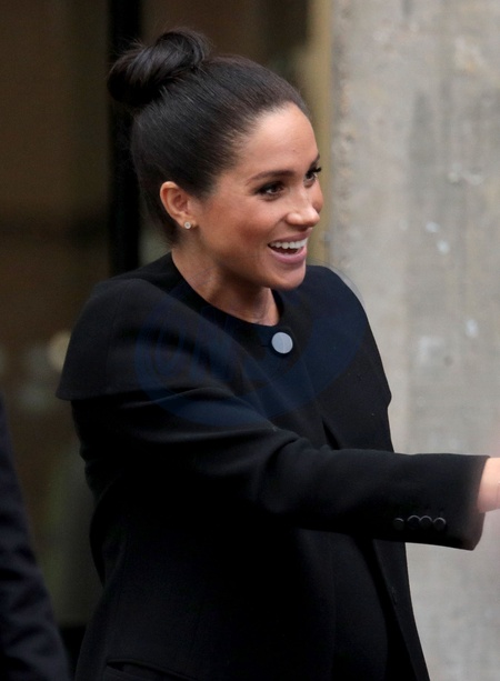 Ksiezna Meghan w czerni podczas wizyty w Association of Commonwealth Universities