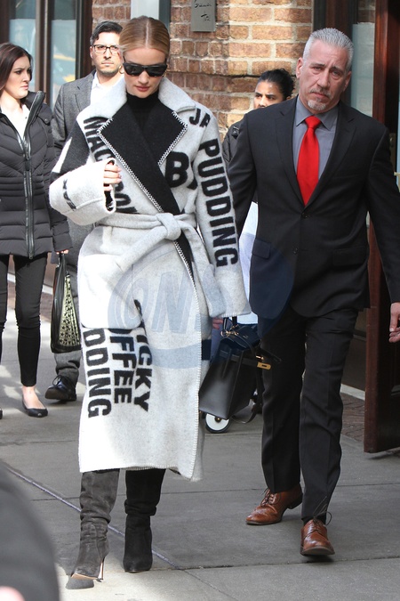 Rosie Huntington-Whiteley w cieplym plaszczu w napisy