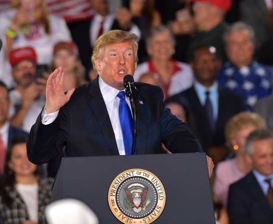 Melania Trump i Donald Trump na wiecu na Florida International University