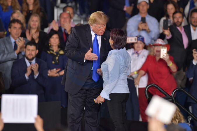 Melania Trump i Donald Trump na wiecu na Florida International University