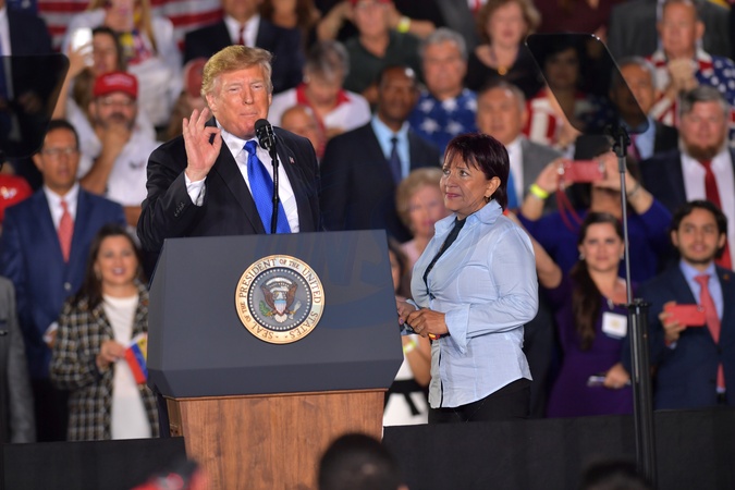 Melania Trump i Donald Trump na wiecu na Florida International University