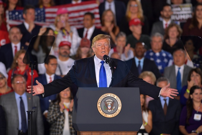 Melania Trump i Donald Trump na wiecu na Florida International University