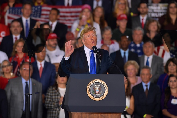 Melania Trump i Donald Trump na wiecu na Florida International University