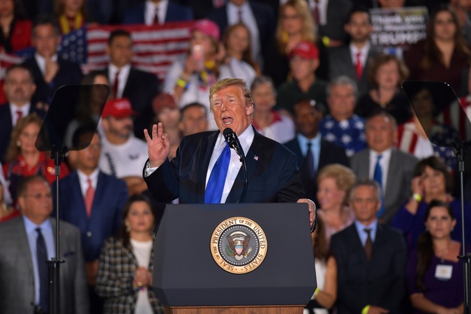 Melania Trump i Donald Trump na wiecu na Florida International University
