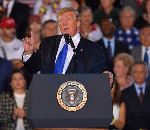 Melania Trump i Donald Trump na wiecu na Florida International University