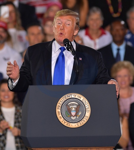 Melania Trump i Donald Trump na wiecu na Florida International University