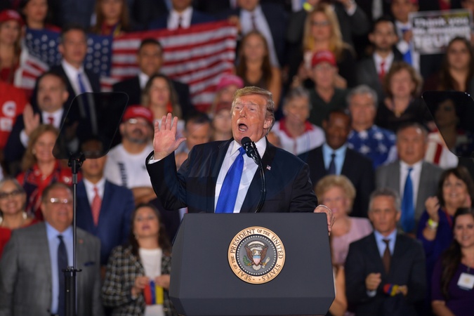 Melania Trump i Donald Trump na wiecu na Florida International University