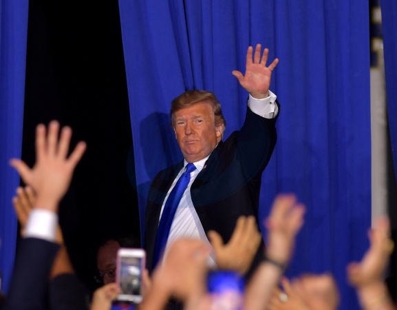 Melania Trump i Donald Trump na wiecu na Florida International University