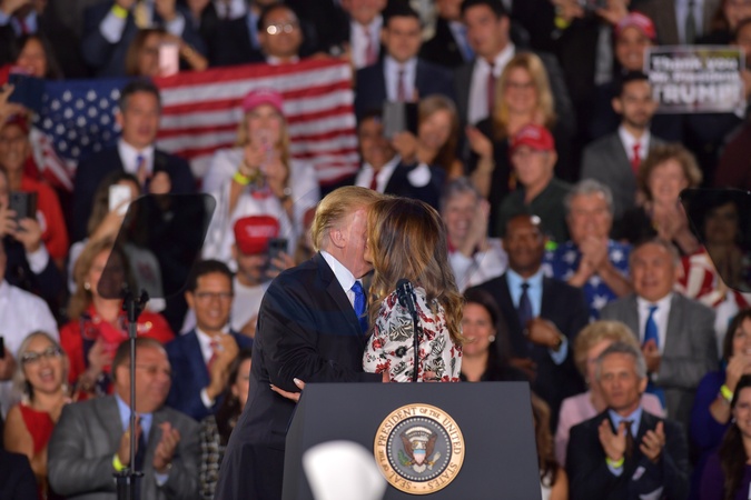 Melania Trump i Donald Trump na wiecu na Florida International University
