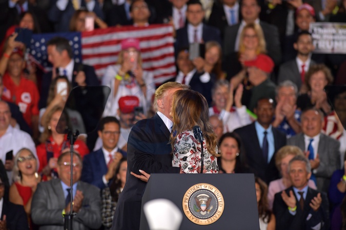 Melania Trump i Donald Trump na wiecu na Florida International University