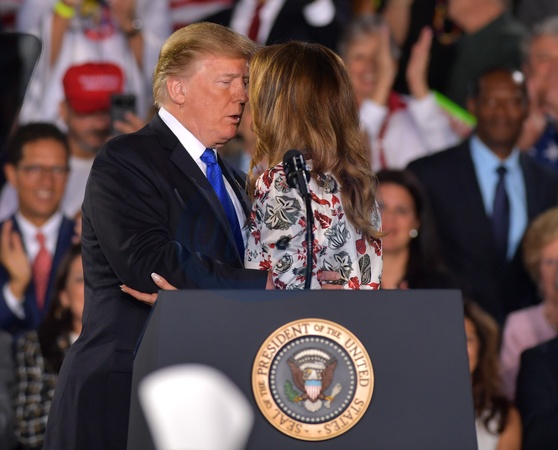 Melania Trump i Donald Trump na wiecu na Florida International University