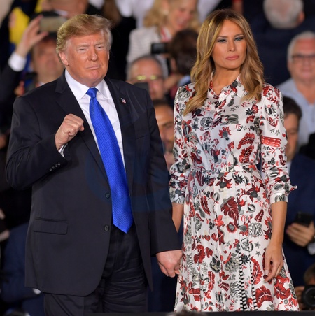 Melania Trump i Donald Trump na wiecu na Florida International University