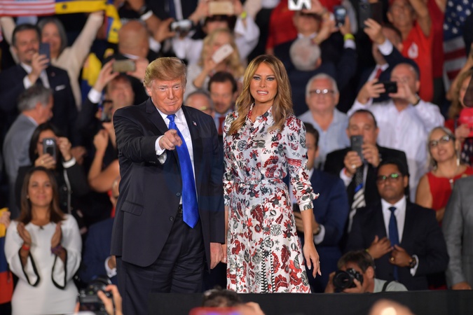 Melania Trump i Donald Trump na wiecu na Florida International University