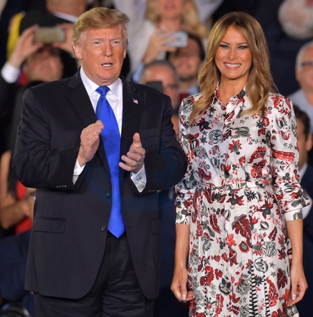Melania Trump i Donald Trump na wiecu na Florida International University