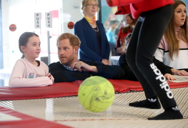 Ksiaze Harry podczas wizyty w 'Fit And Fed' Half-Term Initiative