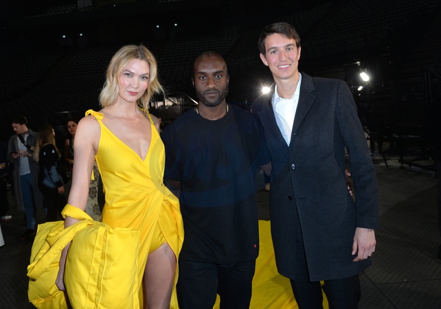 Karlie Kloss z ogromnym, zoltym trenem na backstage pokazu Off-White