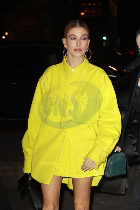 Hailey Baldwin w zoltej koszuli i z golymi nogami