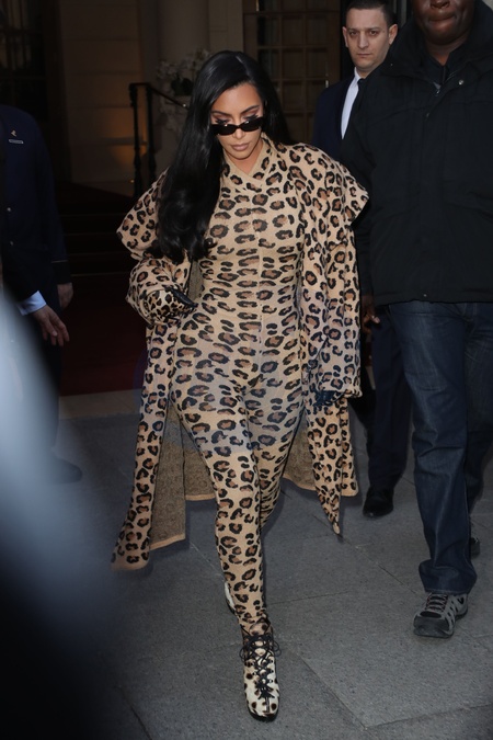 Kim Kardashian jak leopard, Paris Fashion Week