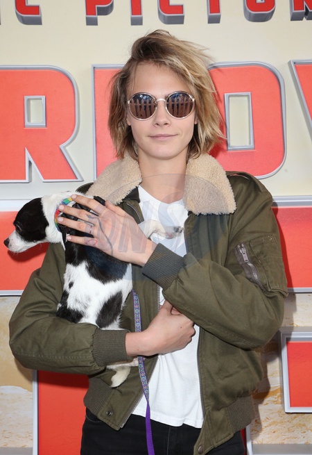 Cara Delevingne z pieskami pozuje na premierze Superpower Dogs