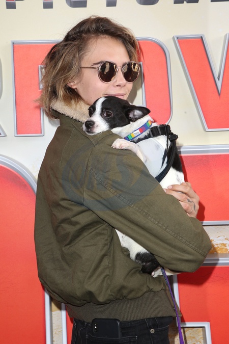 Cara Delevingne z pieskami pozuje na premierze Superpower Dogs