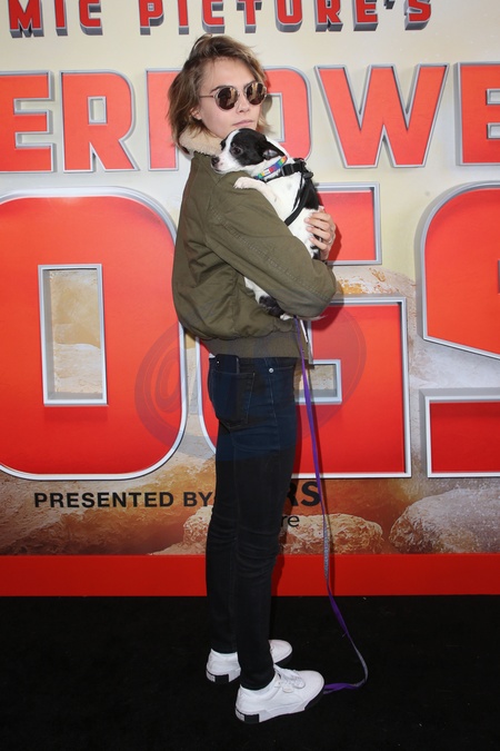 Cara Delevingne z pieskami pozuje na premierze Superpower Dogs