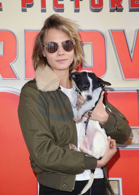 Cara Delevingne z pieskami pozuje na premierze Superpower Dogs