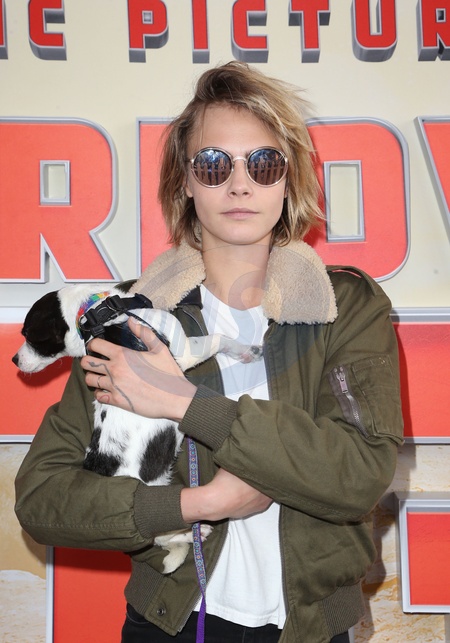 Cara Delevingne z pieskami pozuje na premierze Superpower Dogs