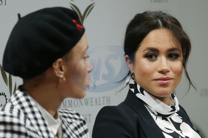 Ksiezna Meghan podczas dyskusji z okazji Dnia Kobiet