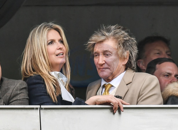 Rod Stewart z zona Penny Lancaster na Cheltenham Racecourse