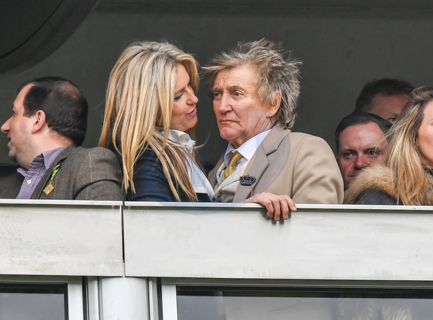 Rod Stewart z zona Penny Lancaster na Cheltenham Racecourse