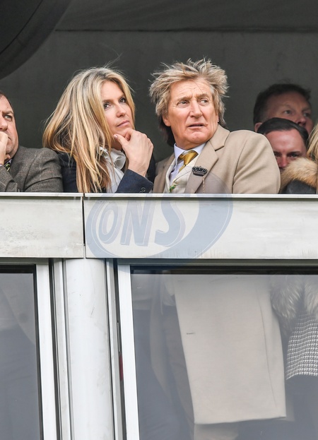 Rod Stewart z zona Penny Lancaster na Cheltenham Racecourse