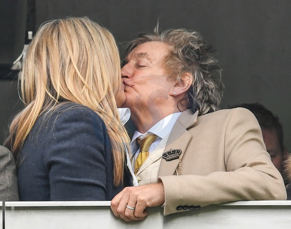 Rod Stewart z zona Penny Lancaster na Cheltenham Racecourse