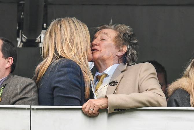 Rod Stewart z zona Penny Lancaster na Cheltenham Racecourse
