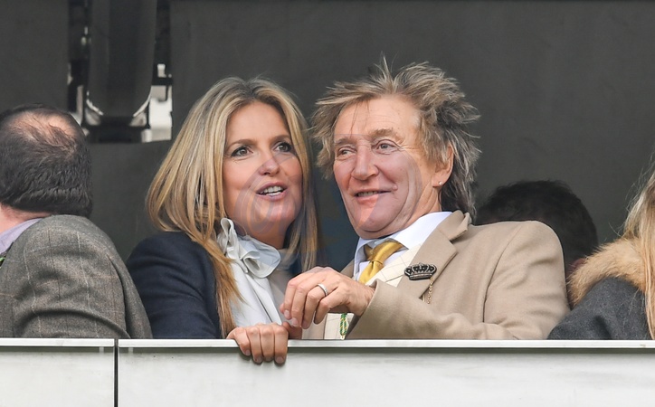 Rod Stewart z zona Penny Lancaster na Cheltenham Racecourse