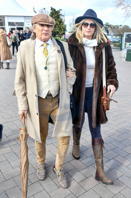 Rod Stewart z zona Penny Lancaster na Cheltenham Racecourse