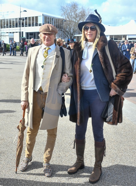 Rod Stewart z zona Penny Lancaster na Cheltenham Racecourse