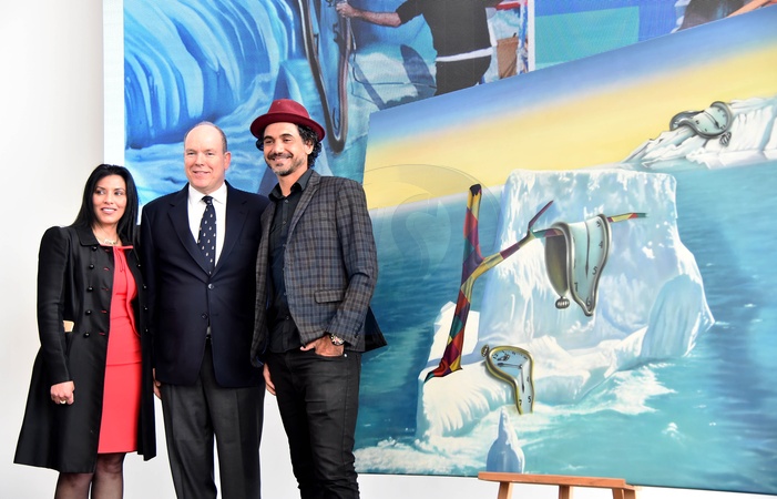 Ksiaze Albert II i Eduardo Kobra pozuja przy dziele artysty dla Yacht Club