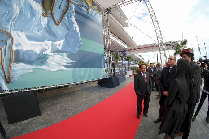 Ksiaze Albert II i Eduardo Kobra pozuja przy dziele artysty dla Yacht Club