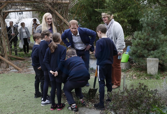 Ksiaze Harry sadzi drzewa w katolickiej szkole