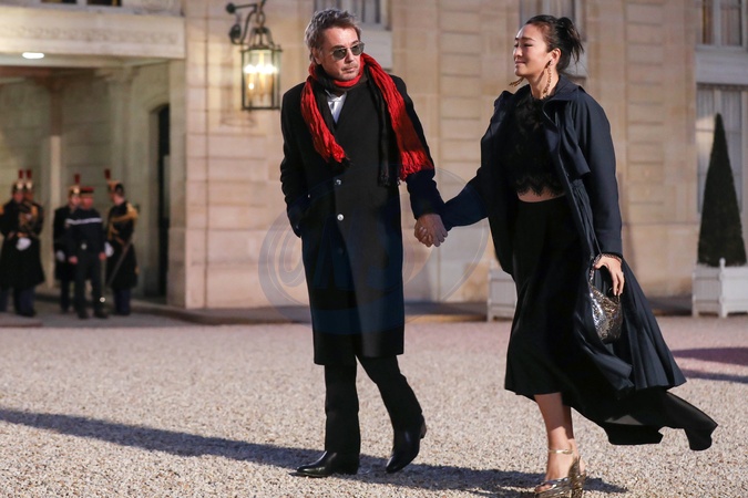 Jean-Michel Jarre ze swoja przyjaciolka Gong Li w drodze na przyjecie w Palacu Elizejskim