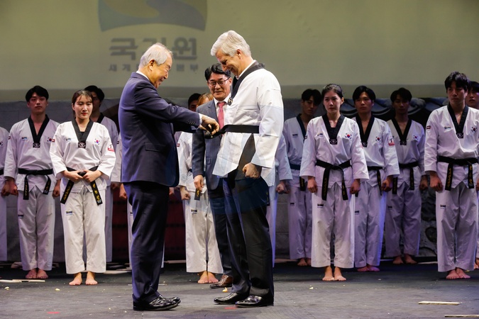 Krol Belgii cwiczy taekwondo w Korei