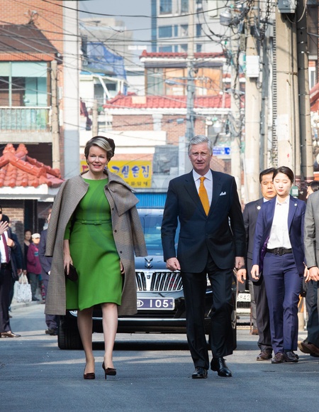 Krolowa Matylda spaceruje z mezem krolem Filipem w Seulu