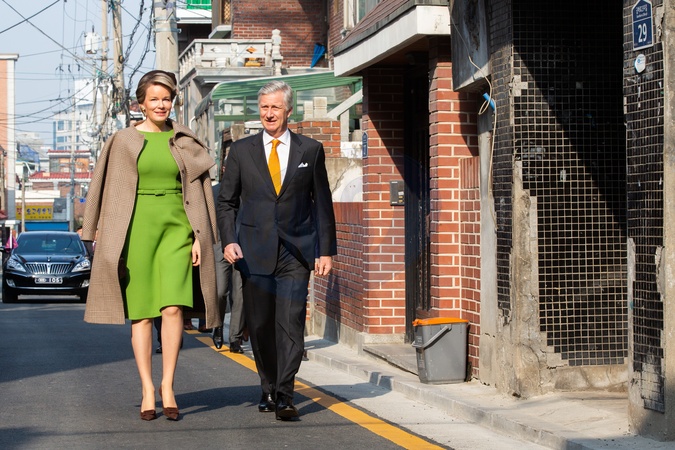 Krolowa Matylda spaceruje z mezem krolem Filipem w Seulu