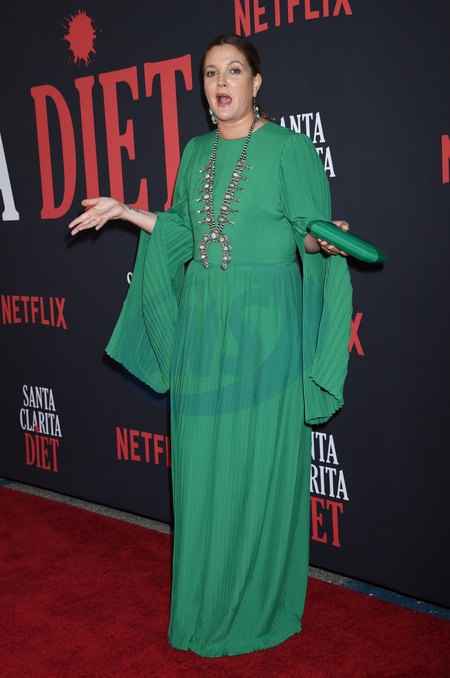 Drew Barrymore w zielonej sukni na premierze Netflixs Santa Clarita Diet Season 3