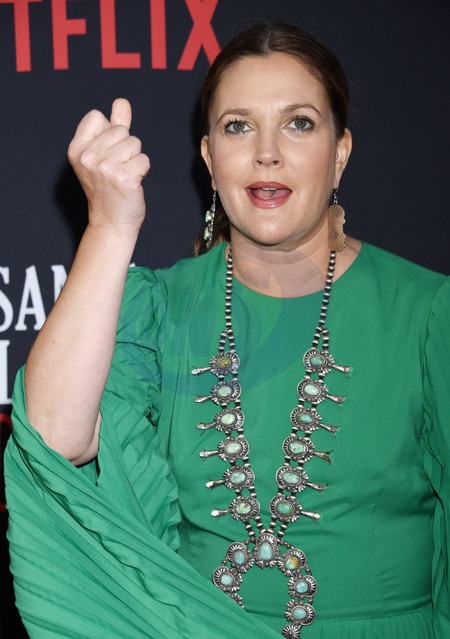 Drew Barrymore w zielonej sukni na premierze Netflixs Santa Clarita Diet Season 3