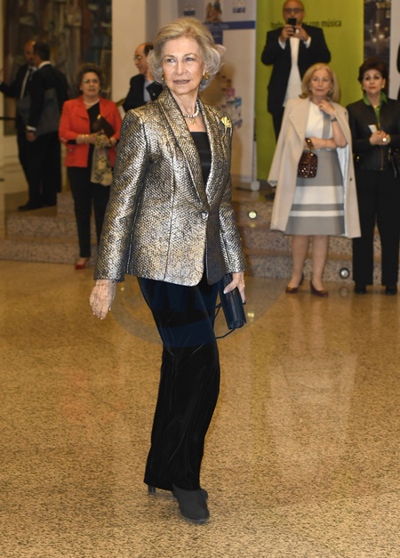 Hiszpanska krolowa Zofia w blyszczacej marynarce na koncercie