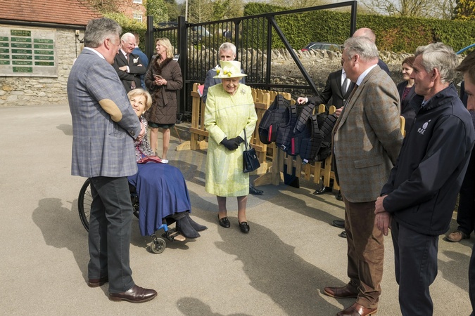 Krolowa Elzbieta II karmi konia marchewka podczas wizyty w Manor Farm Stables