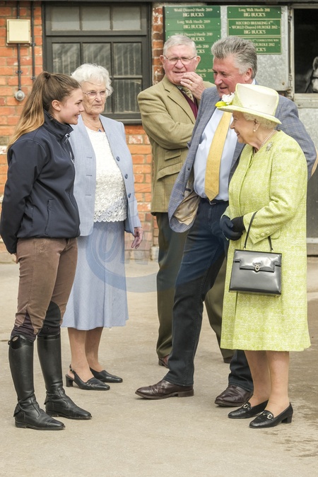 Krolowa Elzbieta II karmi konia marchewka podczas wizyty w Manor Farm Stables