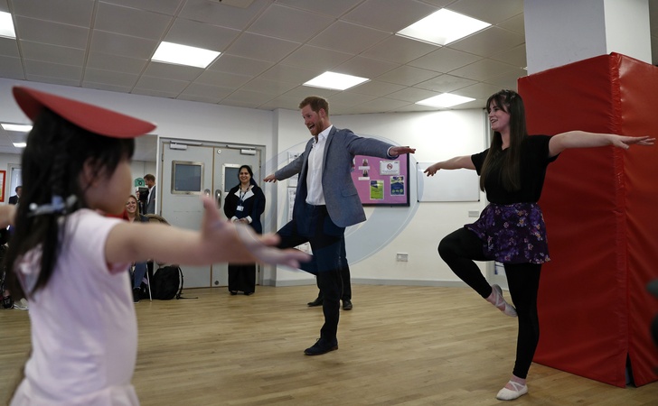 Ksiaze Harry tanczy balet podczas wizyty w YMCA South Ealing
